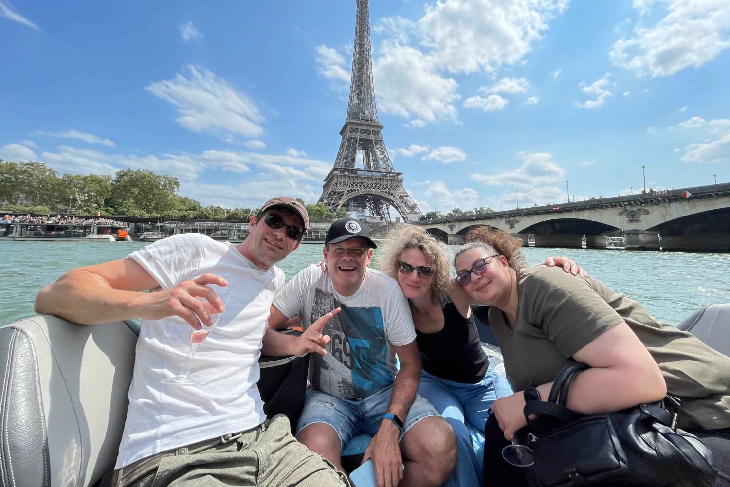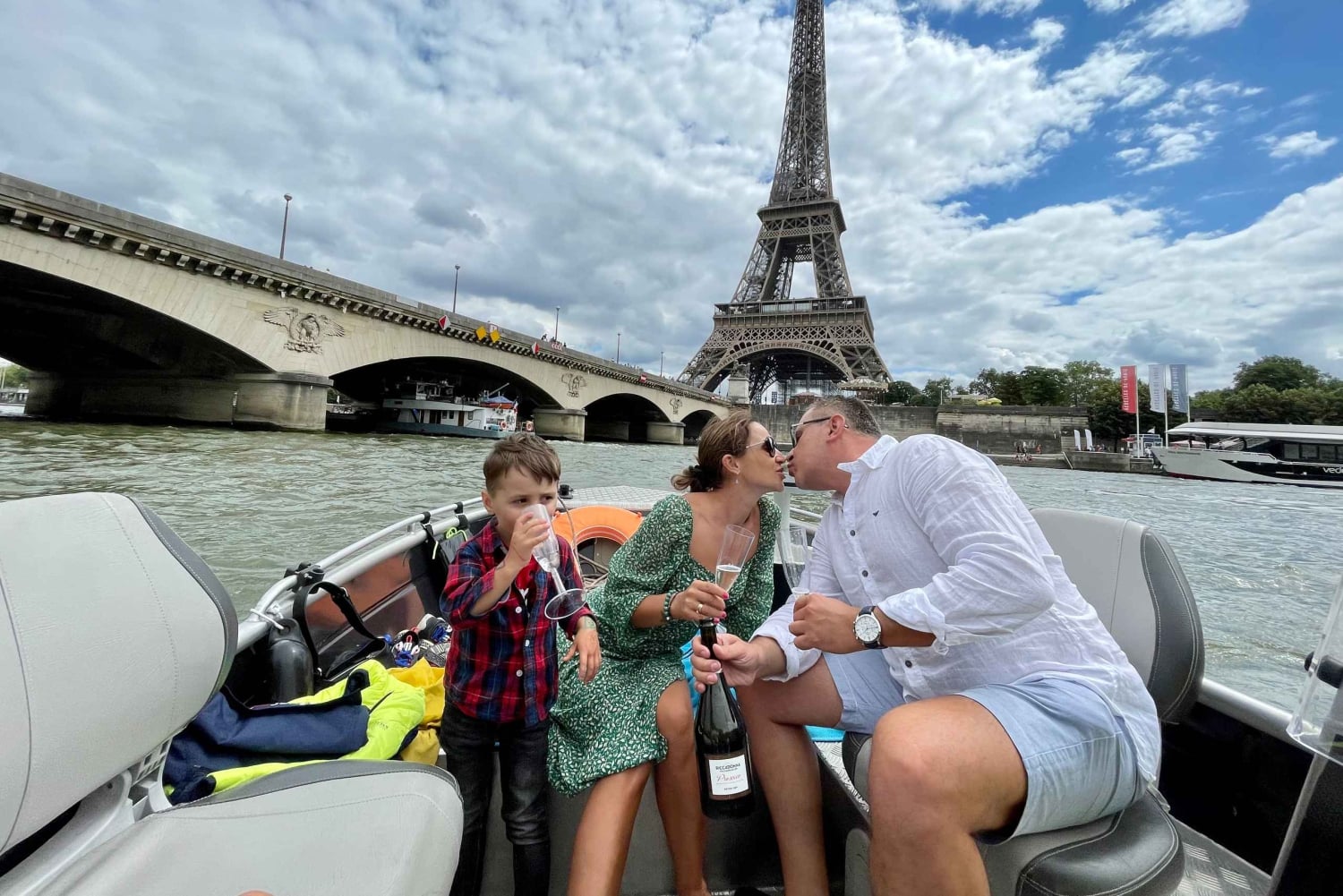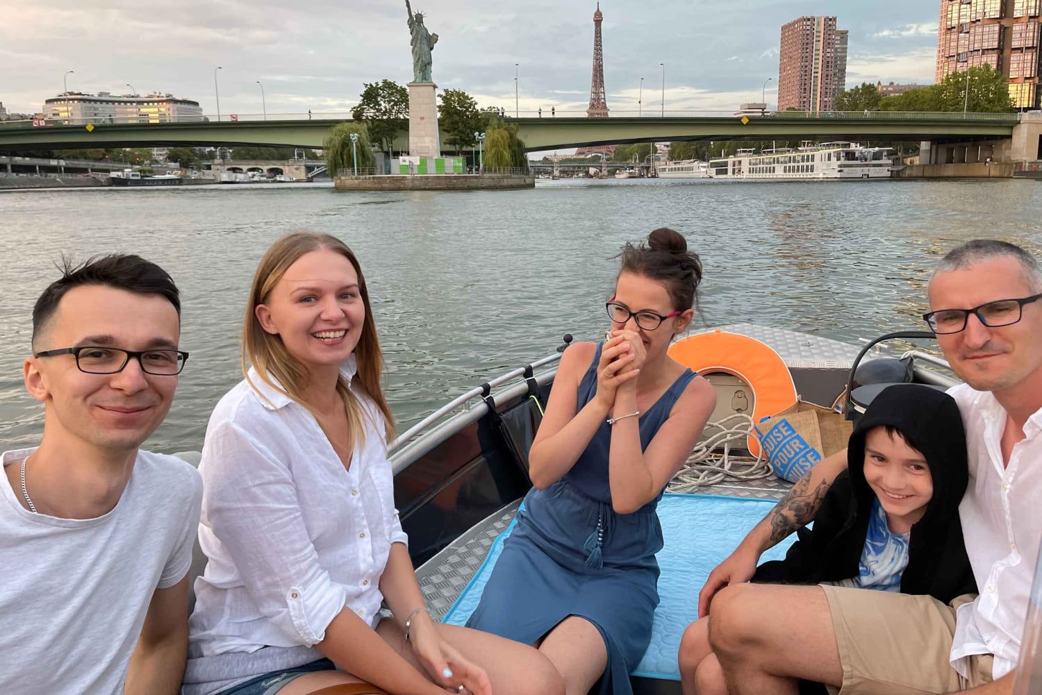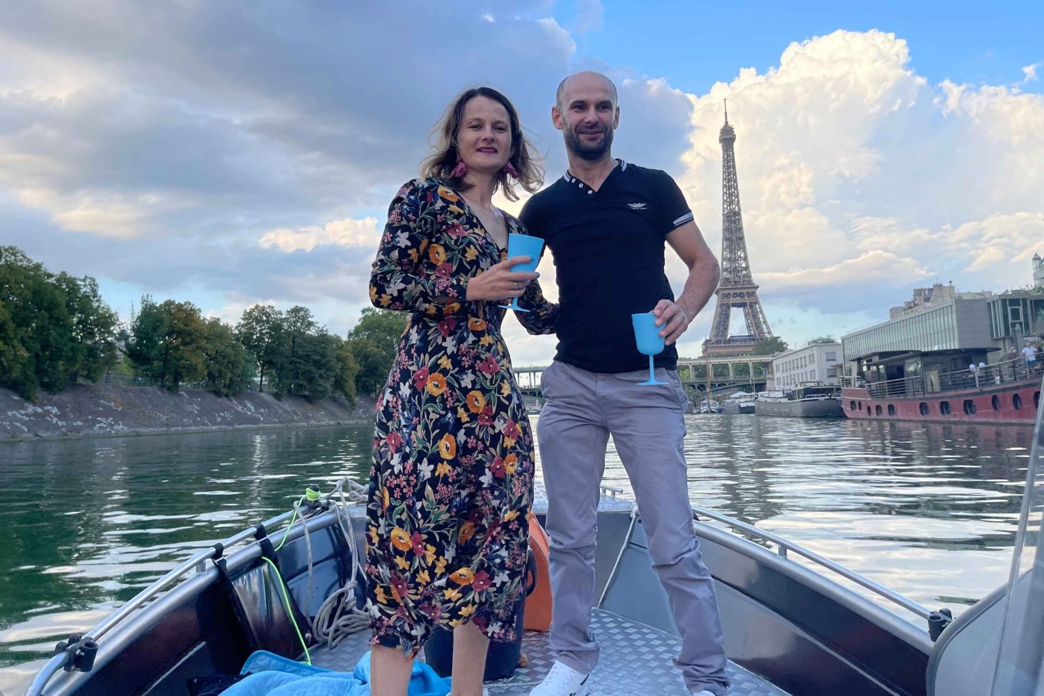Tervetuloa Arturin perheen maailmaan, pieneen perheyritykseen, joka tarjoaa yksityisiä venekierroksia Pariisin sydämessä pullolla samppanjaa :) Emme ole suuri yritys, mutta annamme asiakkaillemme koko sydämemme. Vuoden 2025 tarjouksessamme on sekä vakiovene että hieman suurempi ja mukavampi luksusvene :) Voit nähdä molemmat galleriassa. Vakiovene on Seine-joen halvin ja pienin vene. VAKIO- tai LUXURY-VENE tarjoaa saman palvelun (palveluni ei riipu hinnasta) – ainoa ero on mukavuudessa.Hinta 1–4 hengelle (399 €) on STANDARD-VENE, hinta 5–6 hengelle tai enemmän (520 €+) on LUXURY-VENE. Jos haluat LUXURY-VENEEN, sinun on valittava vähintään 5 henkilöä. Ei ole väliä, onko teitä 6 vai 2. Ihaile rakkauden ja valojen kaupunkia vedestä käsin tällä Pariisin risteilyllä. Lähde matkaan Seine-joella, joka on yksi Ranskan pisimmistä jokista, ja ihaile Pariisin nähtävyyksiä joen rannalta, kuten ikonista Eiffel-tornia ja Notre Damea. Hyppää veneeseen ja asetu mukavasti ennen lähtöä Port Javel Haut cloce Statue Liberte -satamasta. Voit tuoda omat eväät ja juomat veneeseen, jotta voit nauttia matkastasi täysin (luksusveneessä, standardiveneessä ei pöytiä). Lemmikit ovat myös tervetulleita. Ensin risteilet Vapaudenpatsaan edessä, jonka jälkeen seuraavat Eiffel-torni, Aleksanteri III:n silta, Orsay-museo ja Louvre. Vene kulkee historiallisen Pont Neufin, Euroopan vanhimman kivisillan ja Pariisin ensimmäisen sillan, alta. Heti sen jälkeen avautuu ainutlaatuinen näkymä Notre-Damen katedraalille ja Paris Plagesille, kuuluisalle keinotekoiselle rannalle Seine-joen varrella. Nautittuasi maisemarikruisusta Pariisin ympäri palaat Javel Hautin satamaan, josta kiertue alkoi, tai sinut viedään lähellä Louvre-museota.Includes
