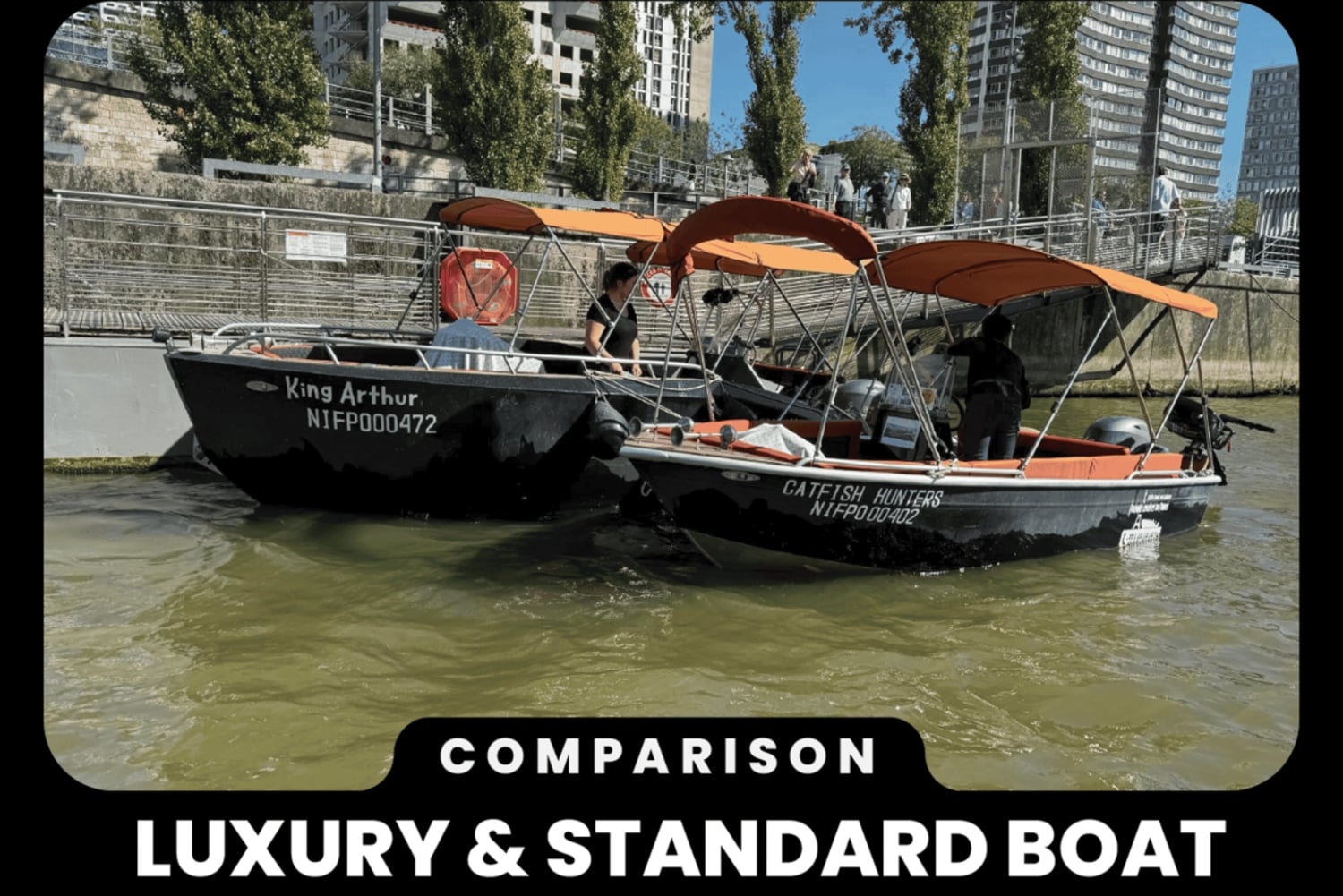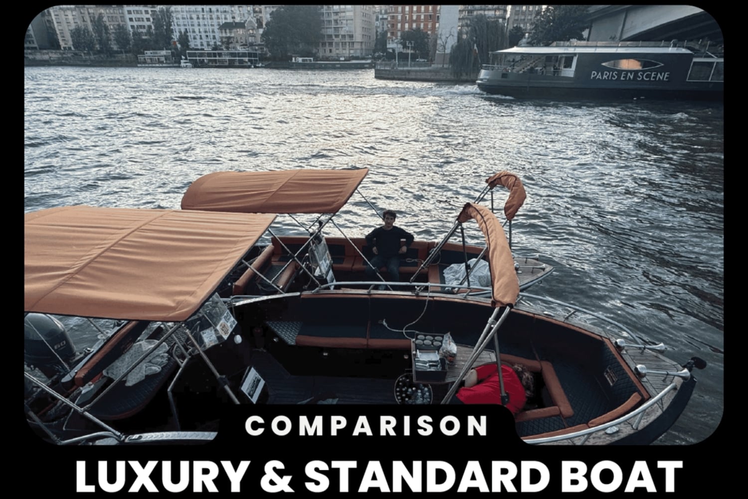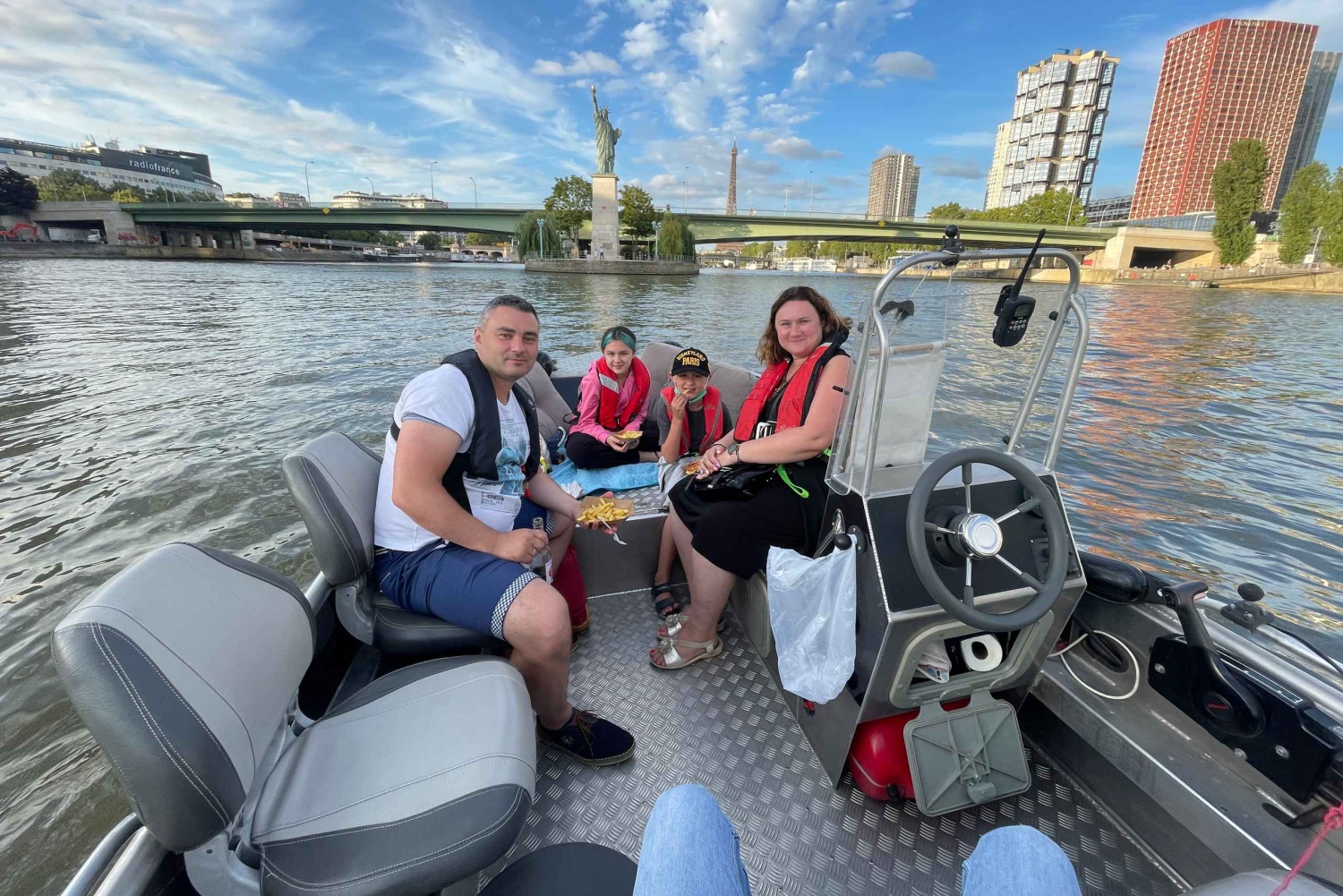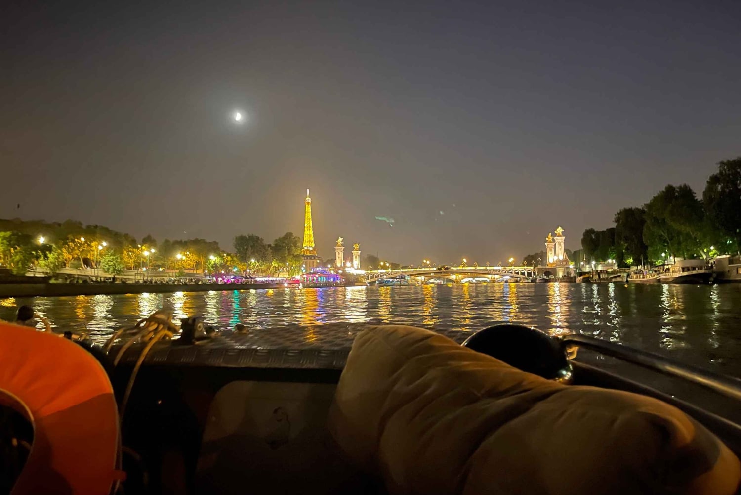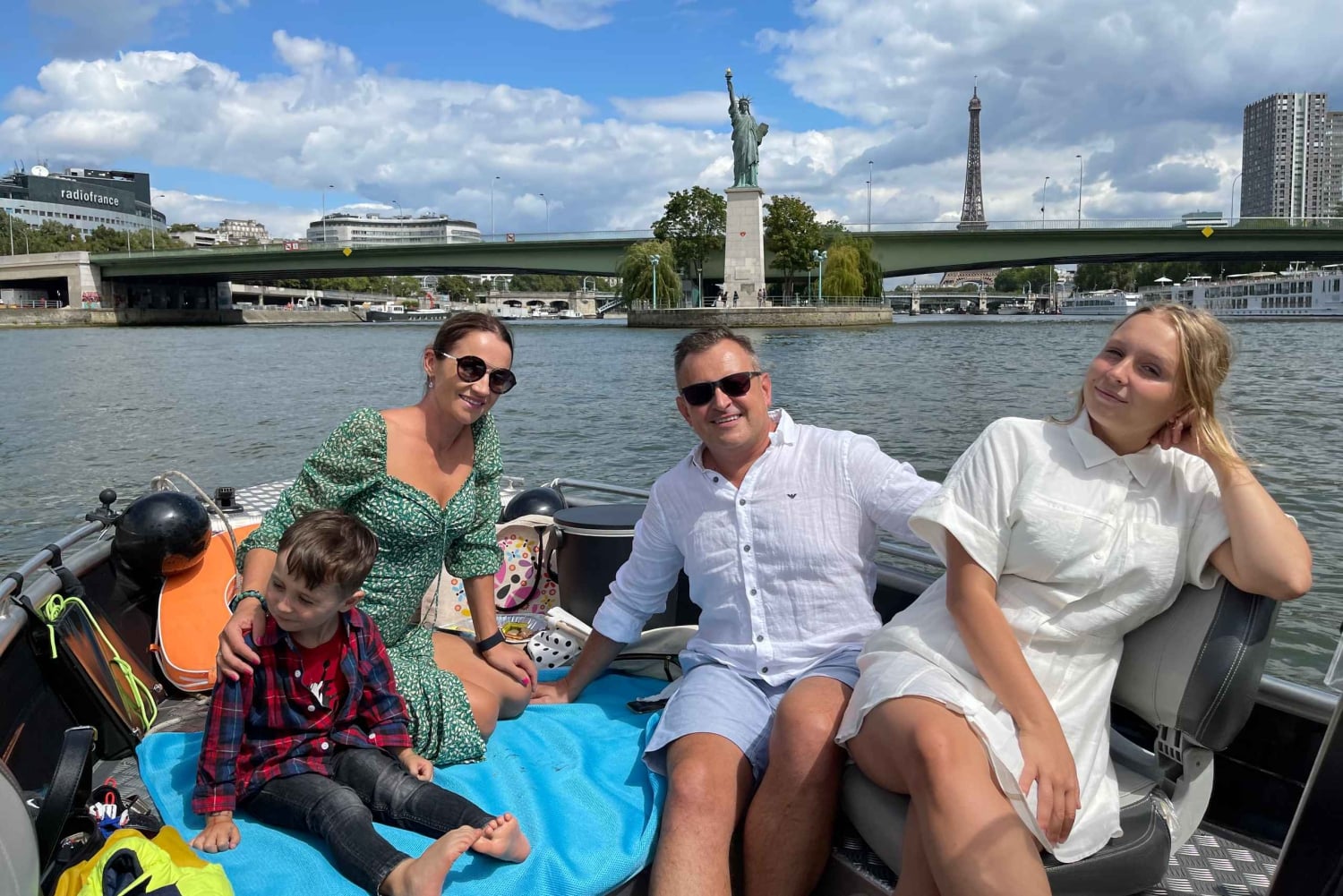 Tervetuloa Arturin perheen maailmaan, pieneen perheyritykseen, joka tarjoaa yksityisiä venekierroksia Pariisin sydämessä pullolla samppanjaa :) Emme ole suuri yritys, mutta annamme asiakkaillemme koko sydämemme. Vuoden 2025 tarjouksessamme on sekä vakiovene että hieman suurempi ja mukavampi luksusvene :) Voit nähdä molemmat galleriassa. Vakiovene on Seine-joen halvin ja pienin vene. VAKIO- tai LUXURY-VENE tarjoaa saman palvelun (palveluni ei riipu hinnasta) – ainoa ero on mukavuudessa.Hinta 1–4 hengelle (399 €) on STANDARD-VENE, hinta 5–6 hengelle tai enemmän (520 €+) on LUXURY-VENE. Jos haluat LUXURY-VENEEN, sinun on valittava vähintään 5 henkilöä. Ei ole väliä, onko teitä 6 vai 2. Ihaile rakkauden ja valojen kaupunkia vedestä käsin tällä Pariisin risteilyllä. Lähde matkaan Seine-joella, joka on yksi Ranskan pisimmistä jokista, ja ihaile Pariisin nähtävyyksiä joen rannalta, kuten ikonista Eiffel-tornia ja Notre Damea. Hyppää veneeseen ja asetu mukavasti ennen lähtöä Port Javel Haut cloce Statue Liberte -satamasta. Voit tuoda omat eväät ja juomat veneeseen, jotta voit nauttia matkastasi täysin (luksusveneessä, standardiveneessä ei pöytiä). Lemmikit ovat myös tervetulleita. Ensin risteilet Vapaudenpatsaan edessä, jonka jälkeen seuraavat Eiffel-torni, Aleksanteri III:n silta, Orsay-museo ja Louvre. Vene kulkee historiallisen Pont Neufin, Euroopan vanhimman kivisillan ja Pariisin ensimmäisen sillan, alta. Heti sen jälkeen avautuu ainutlaatuinen näkymä Notre-Damen katedraalille ja Paris Plagesille, kuuluisalle keinotekoiselle rannalle Seine-joen varrella. Nautittuasi maisemarikruisusta Pariisin ympäri palaat Javel Hautin satamaan, josta kiertue alkoi, tai sinut viedään lähellä Louvre-museota.Includes