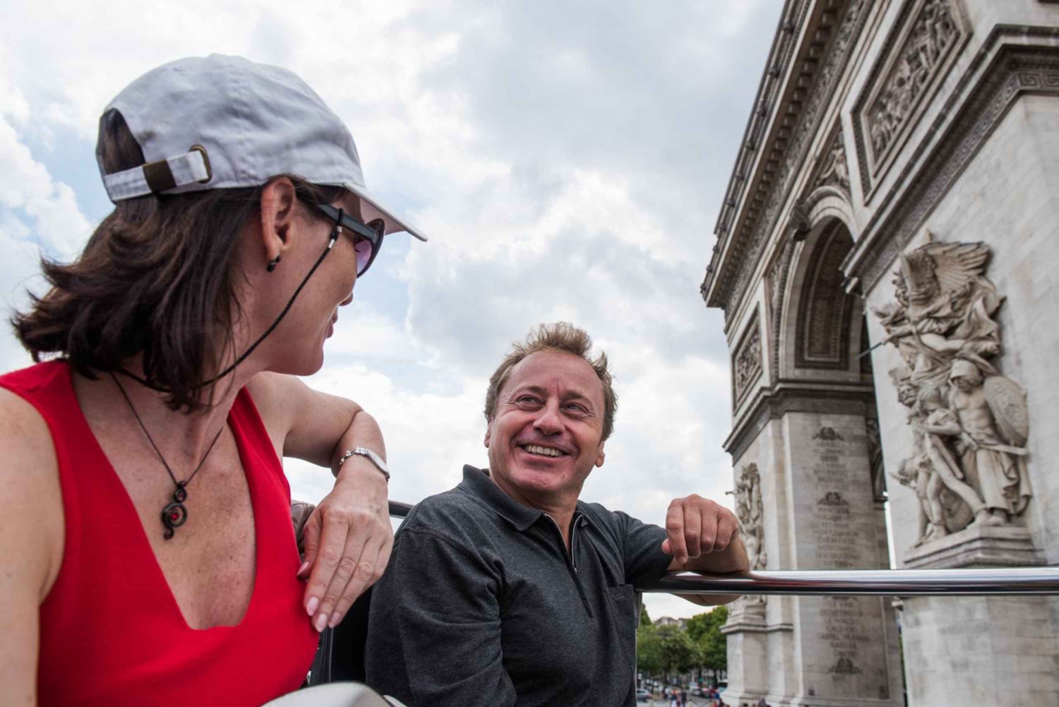 - Je kunt je hop-on-hop-off-tour beginnen bij een van de Big Bus-haltes: 1. Louvre-Pyramide/Big Bus Info Centre - 11 Avenue de l'Opéra 2. Louvre/Pont des Arts - 56 Quai François Mitterrand 3. Notre Dame - 3 Rue Lagrange 4. Musée d'Orsay - 58 Place Henry de Montherlant 5. Champs-Élysées - 156 Avenue des Champs-Élysées 6. Grand Palais - Avenue Winston Churchill 7. Iena - Avenue Iéna 8. Tour Eiffel - Quai Branly, Entrée 2 10. Opéra Garnier - tegenover 15 Rue Scribe De tour duurt ongeveer 2 uur en 15 minuten. De bussen vertrekken elke 10-20 minuten. De halte voor de Arc de Triomphe is halte 8: Champs-Elysées. De Arc de Triomphe is elke dag open van 10.00 tot 21.00 uur. Gratis toegang voor iedereen onder de 18 en voor 18- tot 25-jarigen die EU-burgers en/of inwoners zijn. De cruise, verzorgd door onze partner Les Bateaux Parisiens, vertrekt vanaf ponton nr. 3, Port de la Bourdonnais (vlakbij halte #8: Eiffeltoren), elke 45 minuten van 10.30 tot 21.00 uur. Alle bussen hebben een oprijplaat voor rolstoelen.