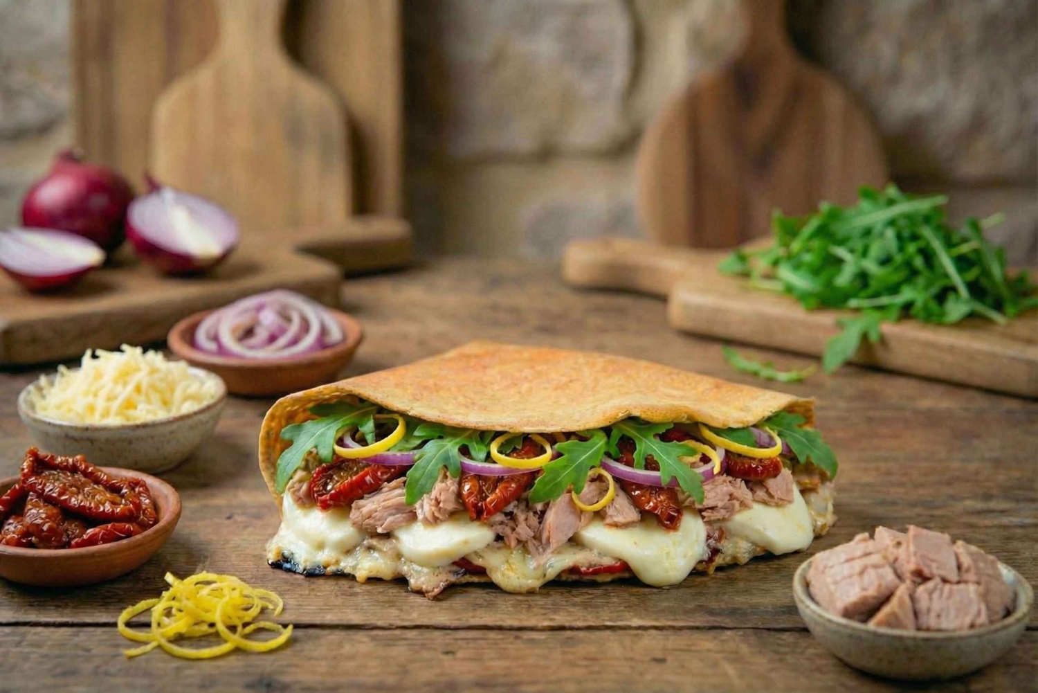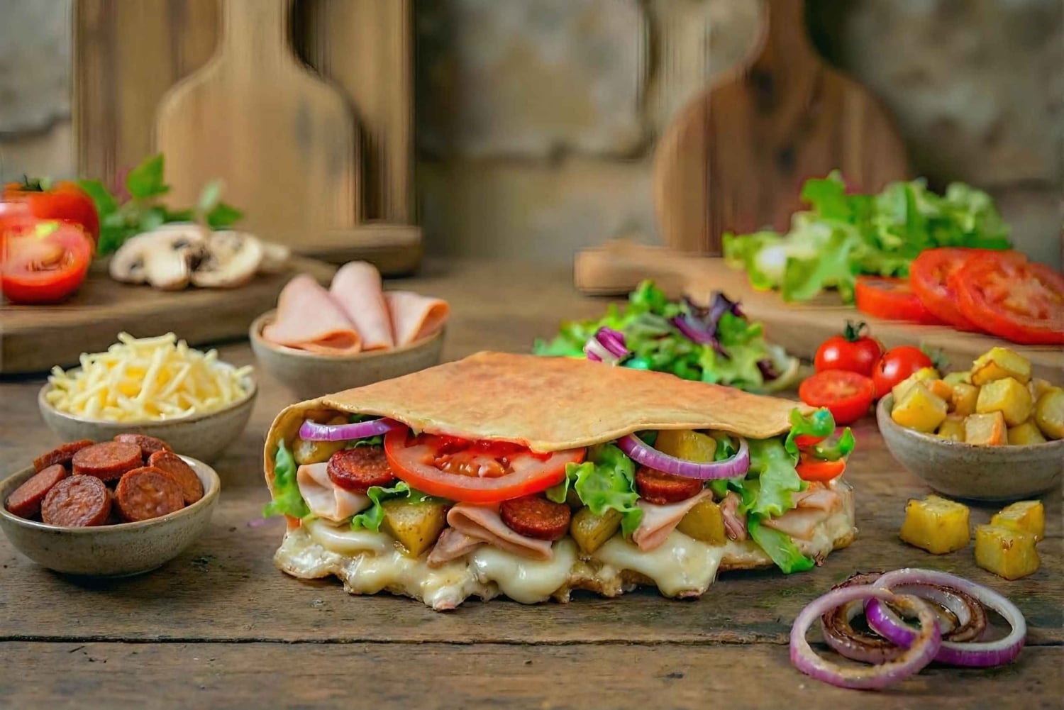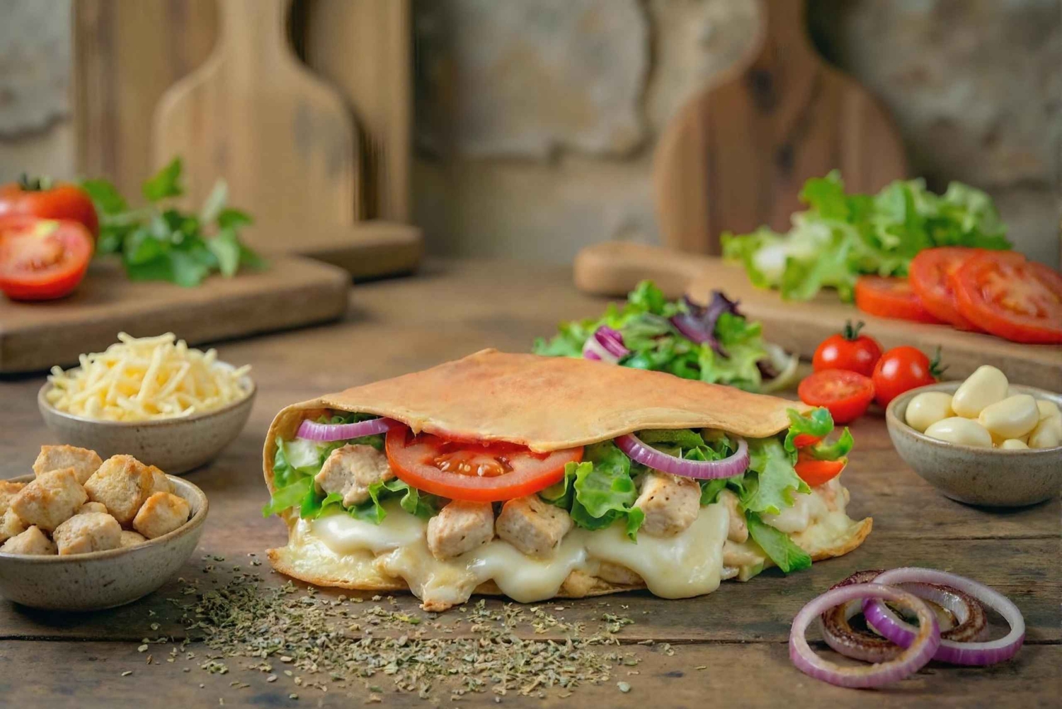 1 Kryddig crepe (upp till 3 ingredienser + grönsaker)