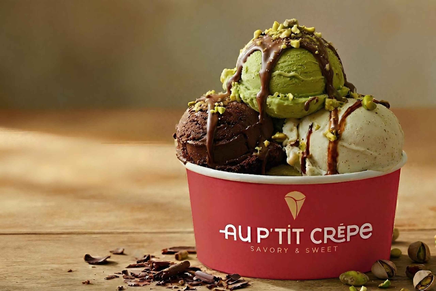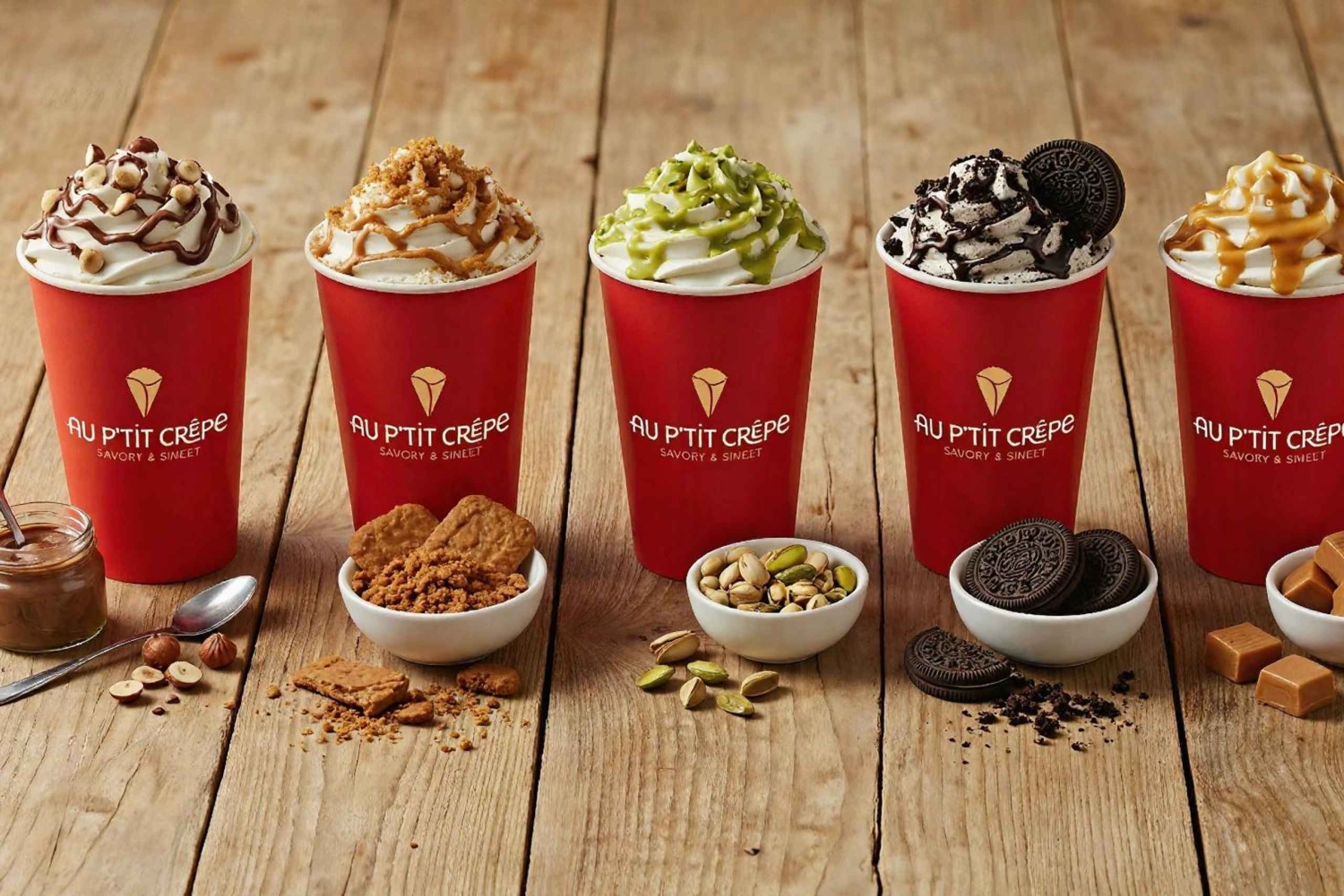 Du kommer att kunna prova vår traditionella 100% färska och handgjorda salta crêpe, söta crêpe och våra berömda hemlagade milkshakes eller vår hantverksmässiga glass!